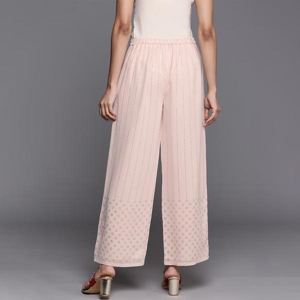 0 review(s) for "Women Peach-Coloured Embellished Georgette Ethnic Palazzos"